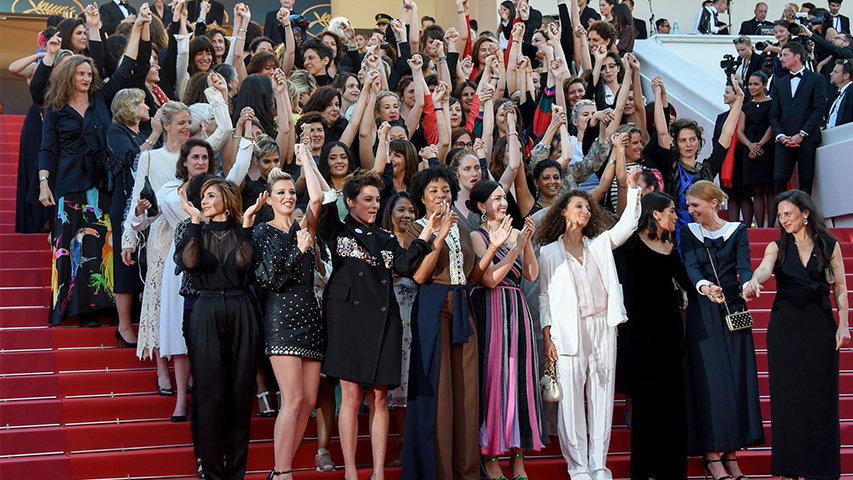 The conversation continued at Cannes too. 82 women from the film industry walked the red carpet in solidarity to make a statement about gender inequality in their respective fields. The demonstration featured speeches and appearances by Hollywood stars, including Kristen Stewart, Cate Blanchett and Salma Hayek.