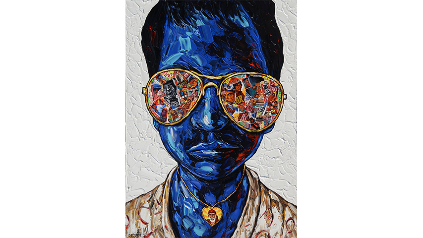 Over 200-artworks-old now, he mentions Jackson Pollock, Vincent Van Gogh and the early work of M. F. Husain as his favourites. “I don’t imitate them though,” he adds quickly. “My inspiration is Mumbai city – reality bites here with its crowds, the everyday survival of the fittest, the overpowering hold of Bollywood on the public mind and the great divide betweeen the privileged and the underprivileged.”