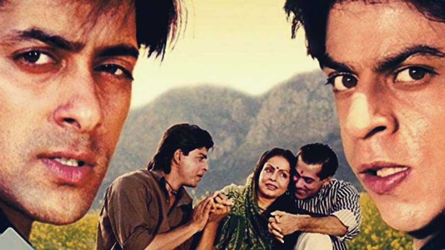 Set against a rural backdrop, it underscored the faith of a poor woman Durga who has faced great injustice: her sons Karan and Arjun were brutally killed by Thakur Durjan Singh and his two brother-in-laws. Yet she retains her faith in Goddess Kali. Karan and Arjun are reborn in different families and social backgrounds but by a leap of faith reunite with their mother of past life. They triumph in the fight against evil. Shah Rukh Khan and Salman Khan, supported by Kajol, Mamta Kulkarni, Raakhee Gulzar, Amrish Puri and Ashok Saraf, provided star power. The music by Rajesh Roshan was also appreciated. Trivia alert -- the film was initially titled Kaainaat. Ajay Devgn was supposed to play the role essayed by Salman Khan, while Juhi Chawla had been approached for the role enacted by Kajol.